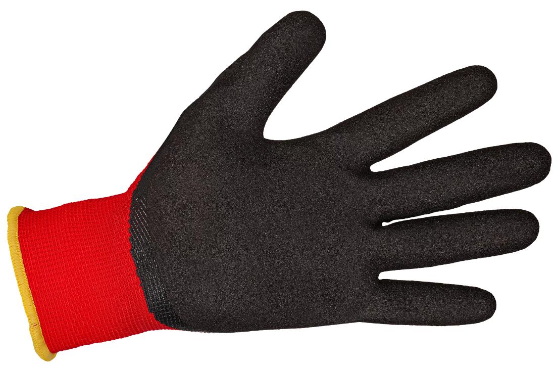 Materiál: 100 % PES úplet 13 g, dvojvrstvový nitril – piesková úprava, pružná manžeta v zápästí