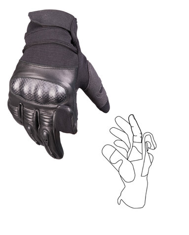 Taktickíé rukavice s ochranou háonok. Dotiahnutie rukavíc prostredníctom chlpne na suchý zips.