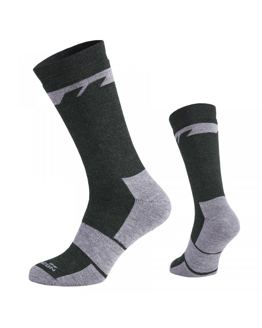 Kvalitné Alpine merino ponožky od výrobcu Pentagon Tactical. Ponožky majú spevnené časti na prstoch a členku, obsahujú elastán pre vyššiu pružnosť. Materiál je rýchlo-schnúci, má anti-bakteriálne vlastnosti a obsahuje aj prímes prírodných vlákien.