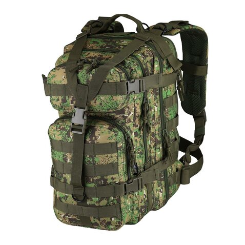 Prepracovaný ruksak typu Assault s 2 hlavnými priestormi, ktoré sú uzatvárateľné na 2-cestné zipsy. Z prednej strany nájdete aj jeden menší a jeden väčší priestor, oba taktiež uzatvárateľné na zips. Zo zadnej časti je priestor na hydrovak. Niektoré z priehradok obsahujú aj členenie ako organizátor, či sieťka.