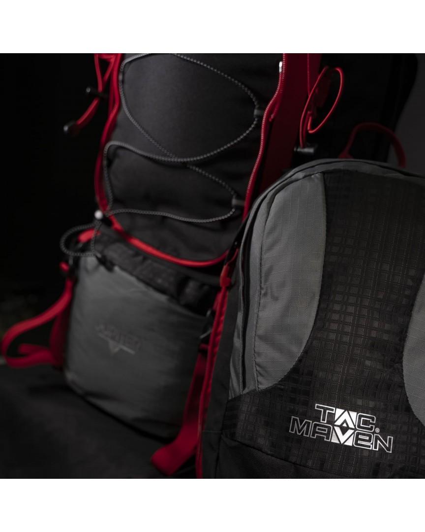 Turistický batoh od výrobcu Tac Maven. Model Jupiter disponuje s objemom 60 + 10 litrov, preto je ideálny na dlhšie outdoorové výpravy. Je vybavený nastaviteľným chrbtovým systémom so štyrmi polohami, odnímateľným 10l batohom a odolnou konštrukciou z nylonu Ripstop a polyesteru Oxford. Ponúka výborné odvetranie chrbta, ergonomické polstrovanie, množstvo praktických vreciek, kompresné popruhy a integrovanú pláštenku. Samozrejmosťou sú reflexné prvky, vodoodpudivé zipsy a úchyty na turistické vybavenie. Tento ruksak je ideálnym spoločníkom na náročné túry a viacdňové expedície.
