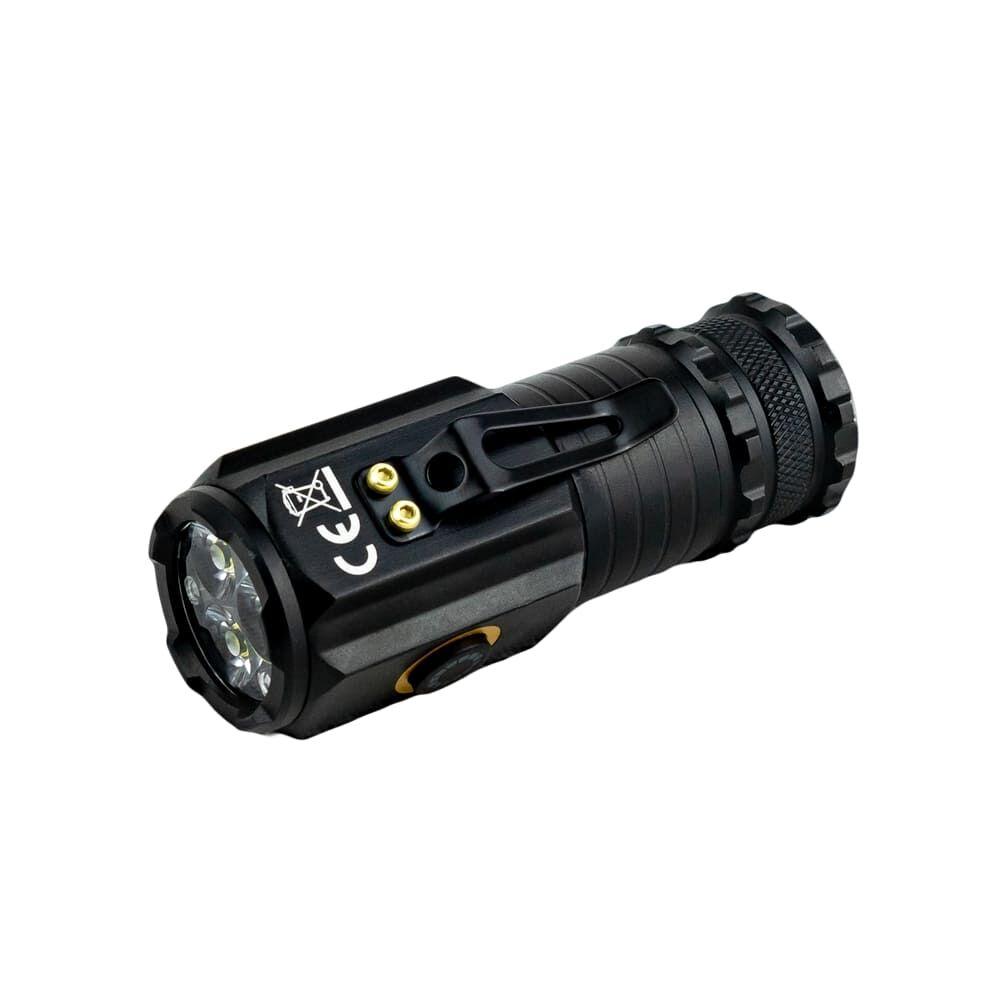 Výkonné vreckové svietidlo s tromi LED diódami (P35 SFS80) a svetelným výkonom až 850 lúmenov. Ponúka 4 režimy svietenia a skrytú funkciu stroboskopu, s dosahom až 100 metrov. Napájané je nabíjateľnou 18350 batériou (1100 mAh), ktorá sa dobíja cez USB-C konektor. Svietidlo má magnetickú základňu, nerezový klip, odolné hliníkové telo (eloxovaný letecký hliník), odolnosť IPX4 a nárazuvzdornosť do 1 metra. Ideálne na každodenné použitie, prácu aj outdoor aktivity.