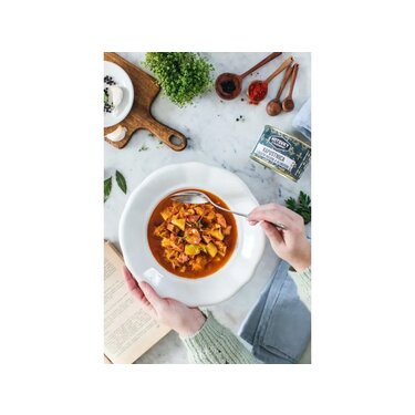 Kapustnica s údeným mäsom a klobásou 400ml od výrobcu Hotovky z plechovky. Potraviny majú vyváženú výživovú hodnotu, ich príprava trvá len niekoľko minút a konzumujú sa priamo z kozervy, taniera, či iného riadu. Ideálne na dlhšie túry, kempovanie, rybárčenie, lov a podobné aktivity. V ruksaku zaberá veľmi málo miesta.